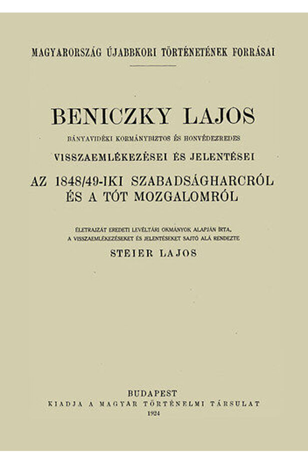 Beniczky Lajos bányavidéki kormánybiztos és honvédezredes visszaemlékezései